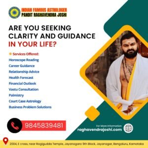 With 25+ years of experience, Pandit Raghavendra Joshi is trusted by many as one of the Best astrologer in Bangalore. He offers personalized insights and effective remedies to help you achieve peace, success, and happiness in all areas of life. Whether you’re facing career dilemmas, relationship issues, or health concerns, Pandit Joshi’s expertise can provide the guidance you need.