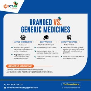 Nectar Lifecare is a trusted generic medicine company in Gujarat, committed to delivering affordable, high-quality healthcare solutions. With a focus on innovation and excellence, we offer a wide range of generic medicines manufactured in WHO-GMP-certified facilities. Our strong PAN India presence ensures accessibility to superior pharmaceutical products for everyone, everywhere.